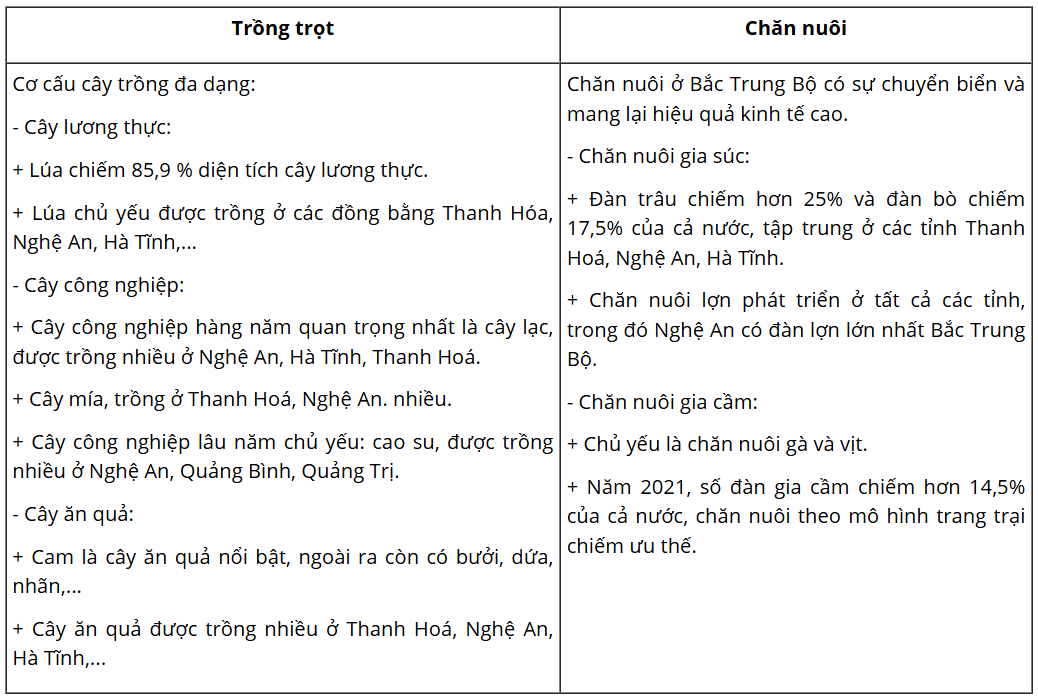 - Sản xuất nông nghiệp có vai trò quan trọng đối với Bắc Trung Bộ.