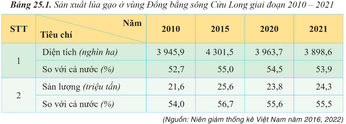 Câu hỏi: Dựa vào thông tin và hình 25.2, hãy trình bày tình hình phát triển sản xuất lương thực và thực phẩm ở vùng Đồng bằng sông Cửu Long.