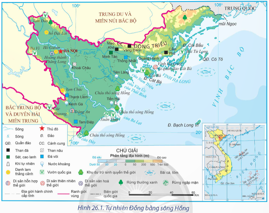 Câu hỏi: Dựa vào hình 26.1 và thông tin trong bài, hãy phân tích các thế mạnh và hạn chế chủ yếu của Đồng bằng sông Hồng trong phát triển kinh tế - xã hội.