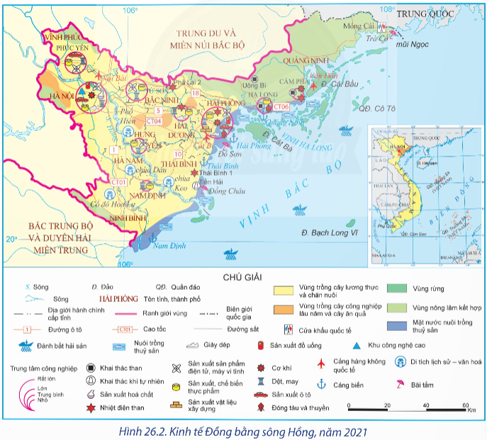Luyện tập 1: Dựa vào hình 26.2, kể tên một số trung tâm công nghiệp và các ngành công nghiệp tiêu biểu của vùng Đồng bằng sông Hồng.