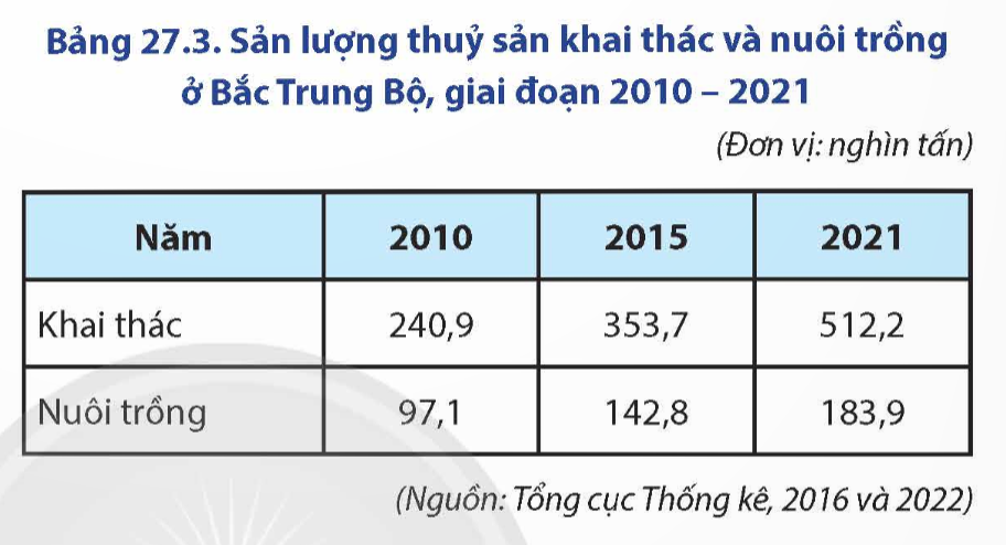 Câu hỏi: Dựa vào hình 27.2 và thông tin trong bài, hãy trình bày một số đặc điểm nổi bật về thủy sản của Bắc Trung Bộ.