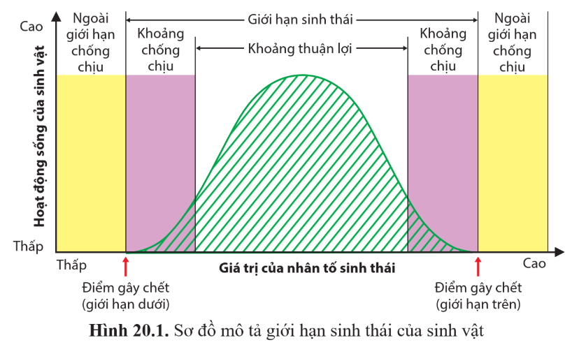 Câu hỏi 4: Quan sát hình 20.1, nhận xét hoạt động sống của sinh vật trong khoảng thuận lợi và khoảng chống chịu.