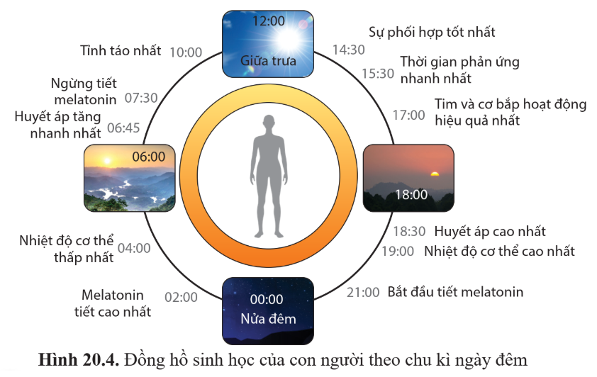 Luyện tập 2: Quan sát hình 20.4 và cho biết khoảng thời gian làm việc, tập thể dục hiệu quả nhất trong ngày.