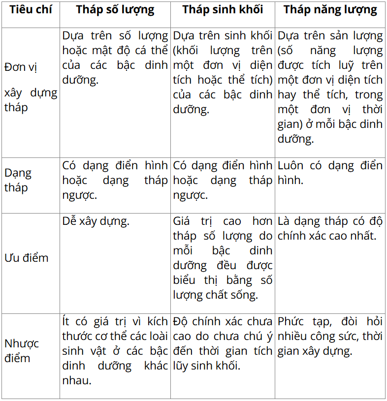 Câu hỏi 6: Phân biệt các dạng tháp sinh thái.