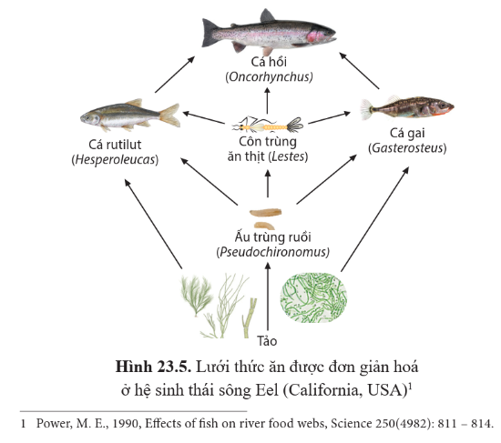 Tảo → ấu trùng ruồi → côn trùng ăn thịt → cá hồi.