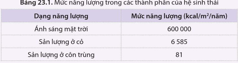 Vận dụng: Bảng 23.1 thể hiện năng lượng của một số thành phần khác nhau trong hệ sinh thái đầm lầy nước mặn.