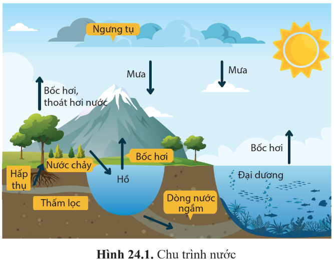 Câu hỏi 2: Quan sát hình 24.1 và trình bày chu trình nước.