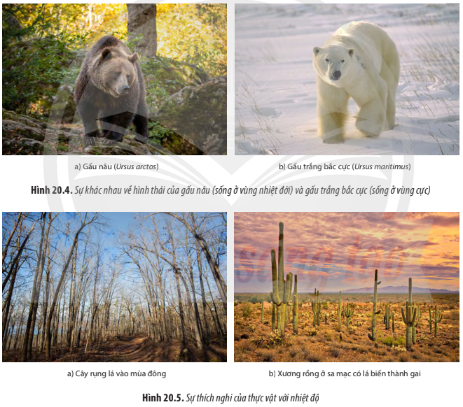 Câu hỏi 4: Quan sát Hình 20.4 và 20.5, hãy cho biết sự khác nhau về hình thái cơ thể ở các loài sinh vật có ý nghĩa như thế nào trong việc thích nghi với các điều kiện môi trường khác nhau.