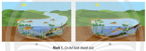 - Cơ chế hình thành loài là cách lí địa lí: các cá thể cùng loài phát tán sang hồ nước mới bị chia cắt bởi chướng ngại địa lí dẫn đến ngăn cản sự giao phối, thúc đẩy sự phân hóa vốn gene giữa các quần thể.