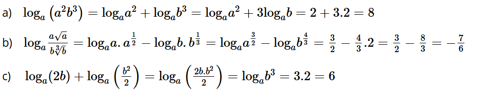 a) loga1; b) logaa; c) loga ac; d) với b > 0.