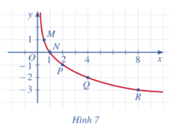 Bằng cách làm tương tự, lấy nhiều điểm với x ∈ (0; +∞) và nối lại, ta được đồ thị hàm số (Hình 7).