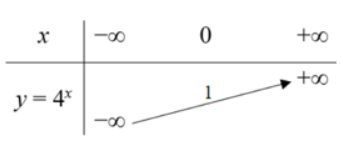 Vì hàm số có cơ số nên ta có bảng biến thiên như sau