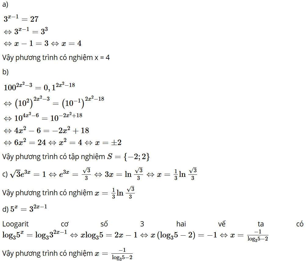 b) Từ định nghĩa lôgarit ta có: