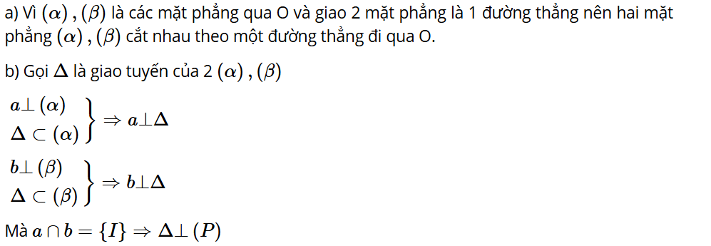 a) Giải thích vì sao hai mặt phẳng (α), (β) cắt nhau theo một đường thẳng ∆ đi qua O.