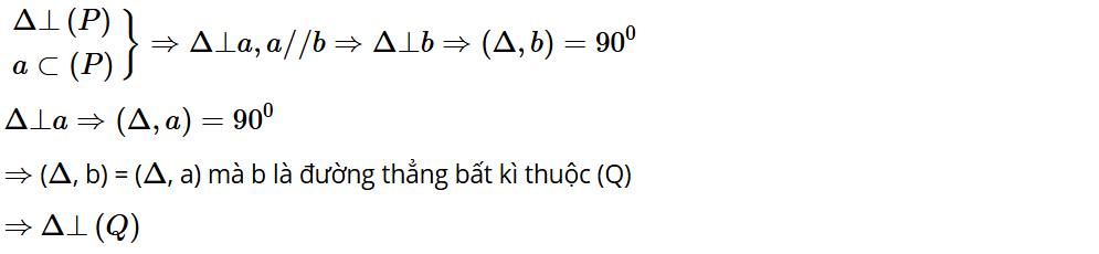 Do b vuông góc với mọi đường thẳng m bất kì trong (P) nên b vuông góc với (P).