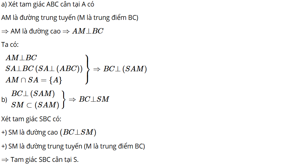 Bài 7.5: Cho hình chóp S.ABC có đáy là tam giác cân tại A và . Gọi M là trung điểm của BC. Chứng minh rằng: