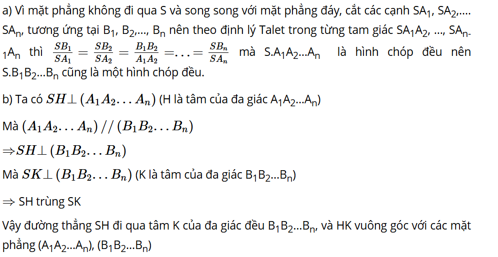b) Gọi H là tâm của đa giác . Chứng minh rằng đường thẳng SH đi qua tâm K của đa giác đều và HK vuông góc với các mặt phẳng , .
