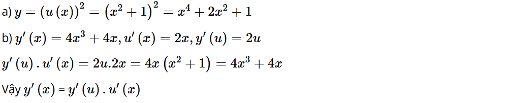 b) Tính và so sánh: y'(x) và y' (u) . u' (x).