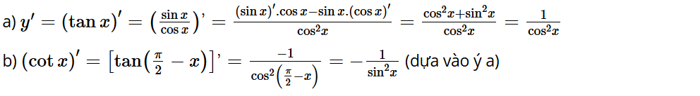 Hoạt động 7: Xây dựng công thức tính đạo hàm của các hàm số y = tan x và y = cot x
