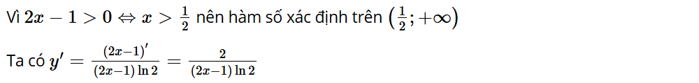 Luyện tập 7: Tính đạo hàm của hàm số y = log2(2x – 1).