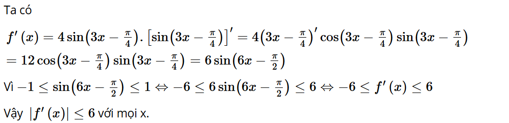 Bài 9.10: Cho hàm số f(x) = . Chứng minh rằng |f'(x)| ≤ 6 với mọi x.