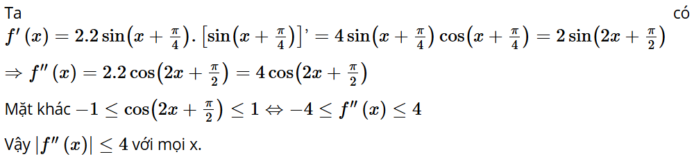 Bài 9.16: Cho hàm số f(x) = . Chứng minh rằng |f''(x)| ≤ 4 với mọi x.